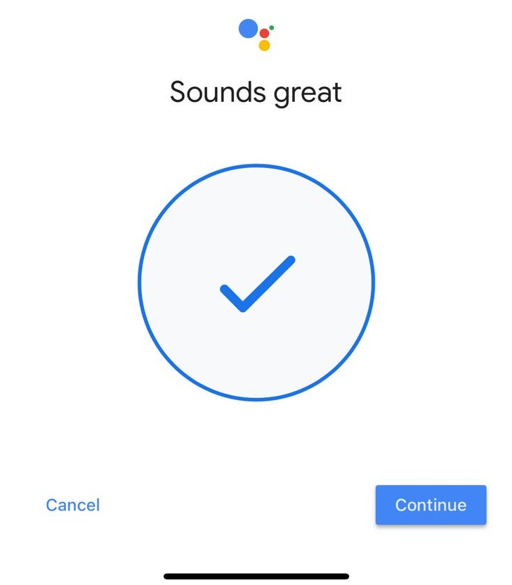 If you see ‘Sounds great’ message, that means you have set up your Voice Assistant successfully. Click the ‘Continue’ button.