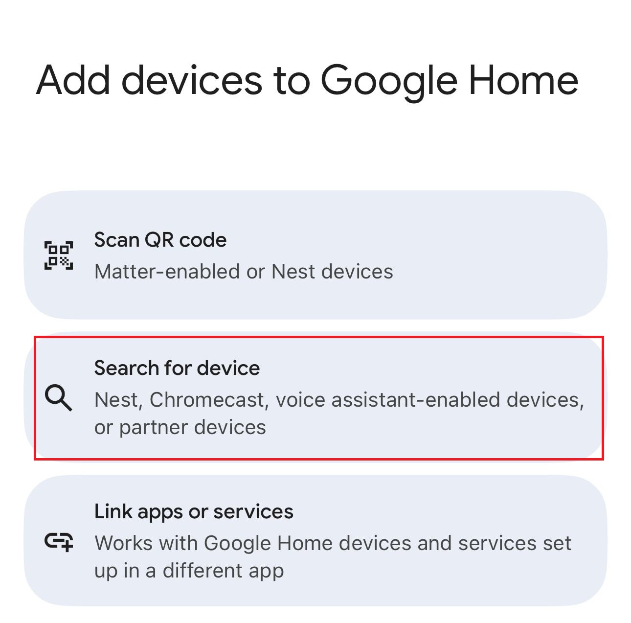 Select ‘Search for device’. It will search for your Google Home Mini. Follow the on-screen prompts. You will connect your Google Home Mini. Ensure your mobile device uses the same Wi-Fi network. This is the network you want for your Google Home Mini. This ensures proper connecting to Wi-Fi. It also completes linking your Google account. This helps you set up Google Home easily.